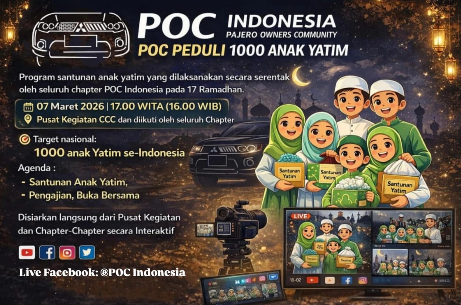 POC Indonesia Peduli 1000 Anak Yatim, Serentak di 10 Chapter se-Indonesia Ketua Umum POC Indonesia Om H. Ahmad Hakim, SH menghadiri sekaligus membuka kegiatan POC Peduli 1000 Anak Yatim